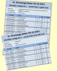 We speelden uitdagend “cross door de country”. Een paar voorbeelden: vanaf hole 4 (geel) afslaan en door naar hole 5 (geel), zonder dat je bal de green van hole 4 mag raken of vanaf de teebox hole 12 (rood) afslaan naar de green van hole 13 (ook rood!), waarbij een proef swing een strafslag oplevert en waar bovendien de neary staat. Kortom: veel gepuzzel en strategische kiezen!