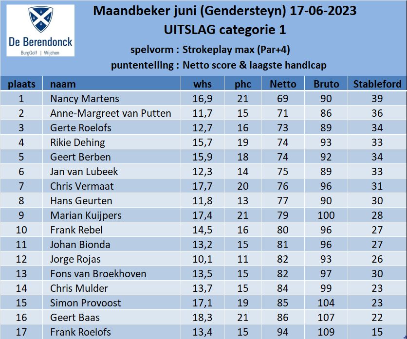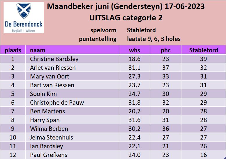 De wedstrijdcommissie feliciteert beide kampioenen van De Berendonck: Anne-Margreet van Putten & Kris Harpal!