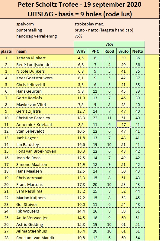 Kortom: een mooie wedstrijd om nog aan je WHS handicap te werken! Dat is een aantal deelnemers prima gelukt.