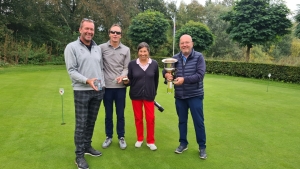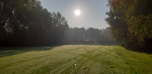 Gelukkig waren de weergoden ons tijdens de inhaalwedstrijd op 10 oktober gunstiger gezind. Met wat mist en een natte baan – zeker in de ochtenduren – beleefden we uiteindelijk een aangenaam zonnige golfdag.