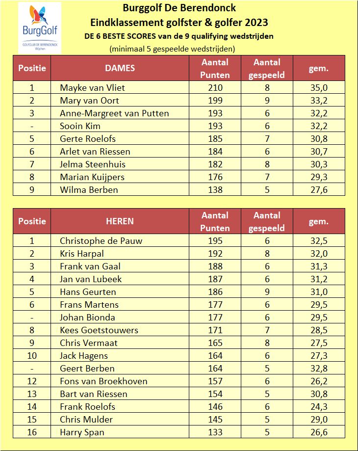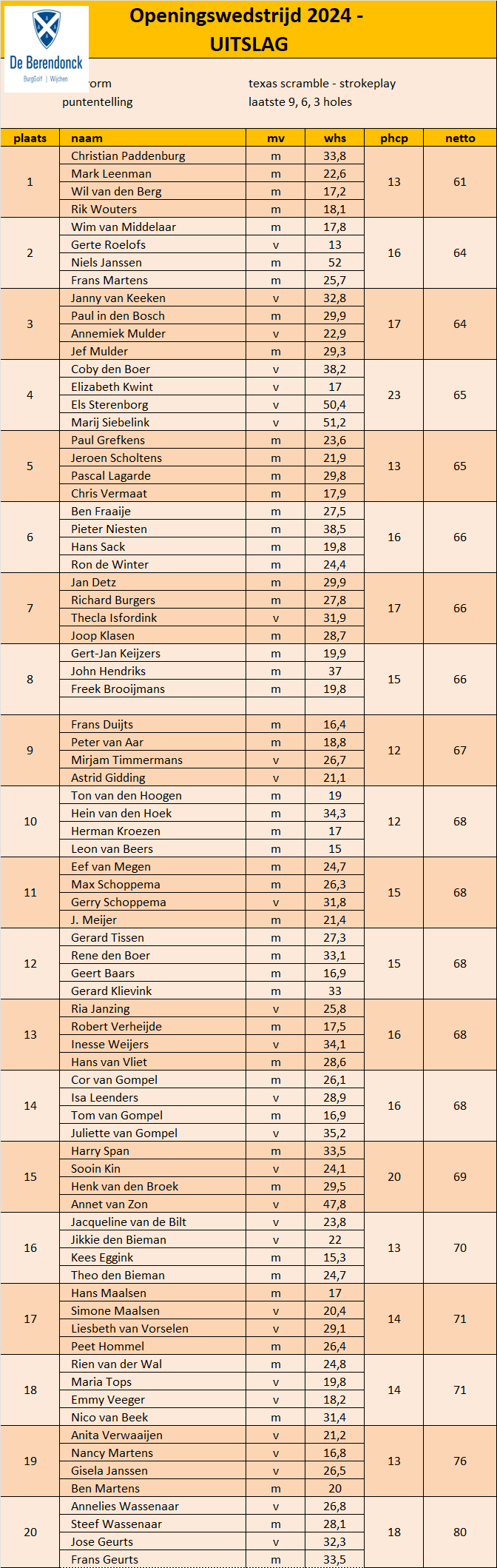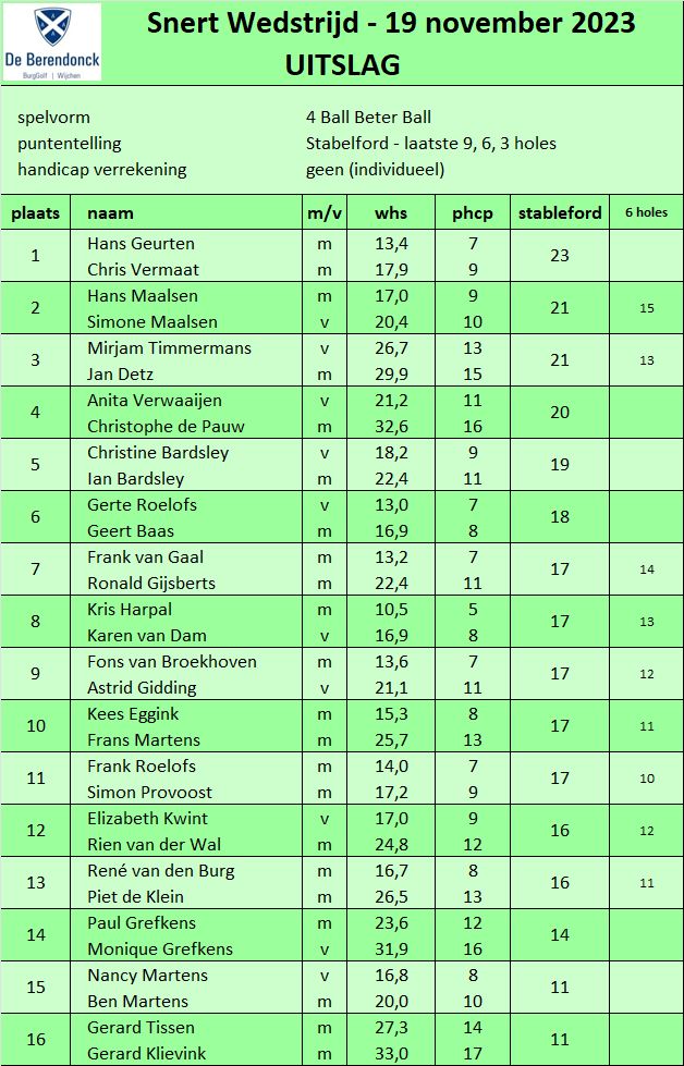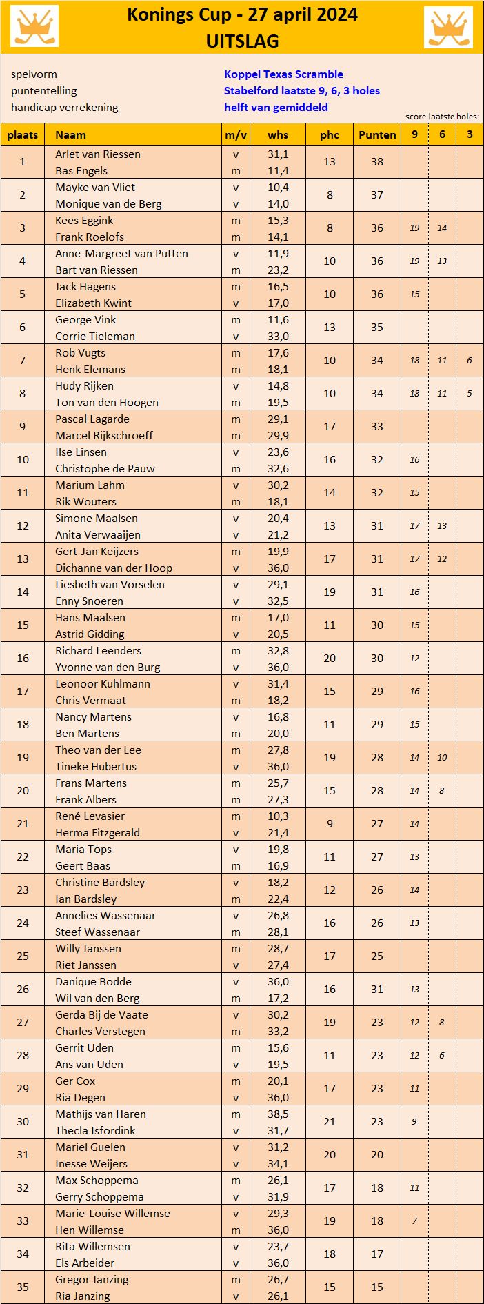 Per abuis werd Mayke als 2e aangeduid echter bij het hertellen van de scores, bleek Jan van Lubeek alsnog 2e te zijn op basis van de playing handicap. Vandaar dat Mayke op de foto staat en Jan niet.