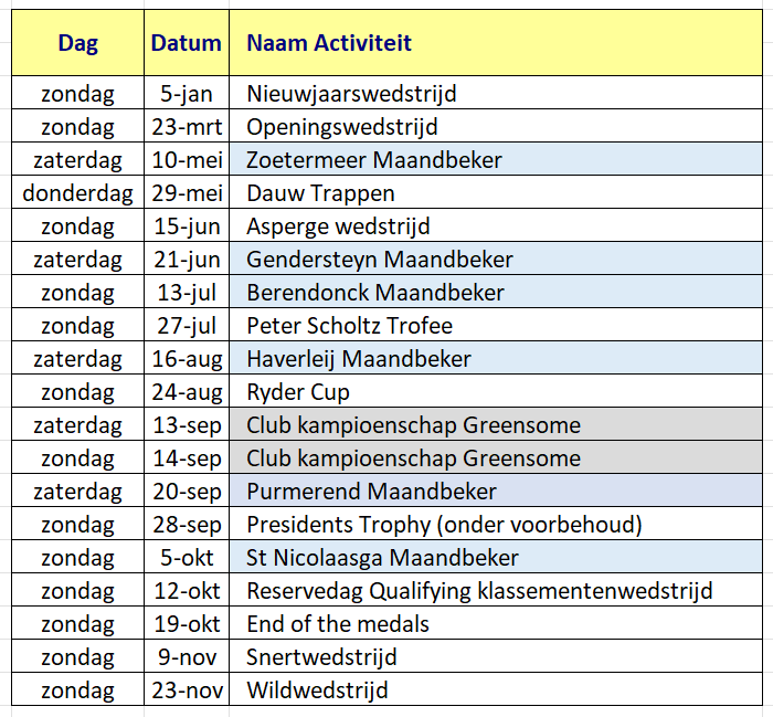 Wedstrijdkalender 2025